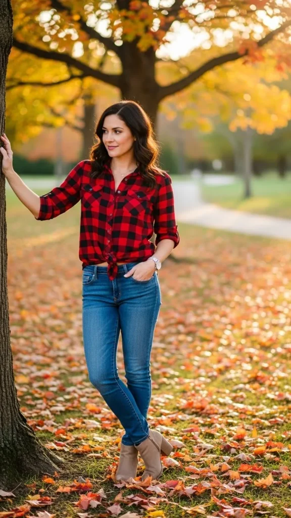 4. Red Plaid Shirt and Slim Fit Jeans