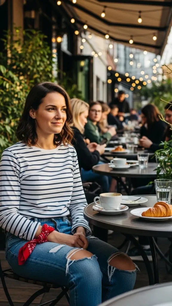 Stripes are classic and casual at the same time. A long sleeve tee with distressed denim makes a great base for Valentine’s when you want easy style. Add pops of red with accessories like scarves or belts instead of clothing. This look is definitely one you can DIY by customizing existing tees or distressing older jeans lightly at home.