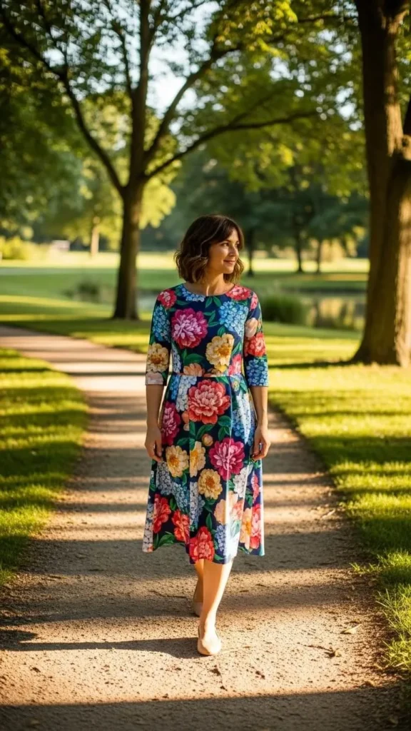 12. Floral Midi Dress with Flats
