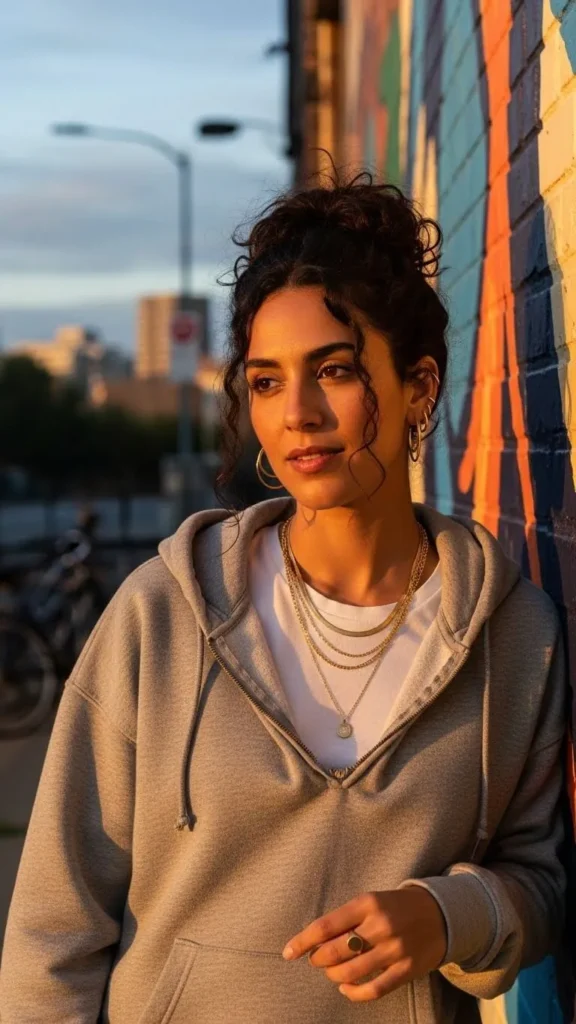 20. Casual Hoodie with Gold Jewelry