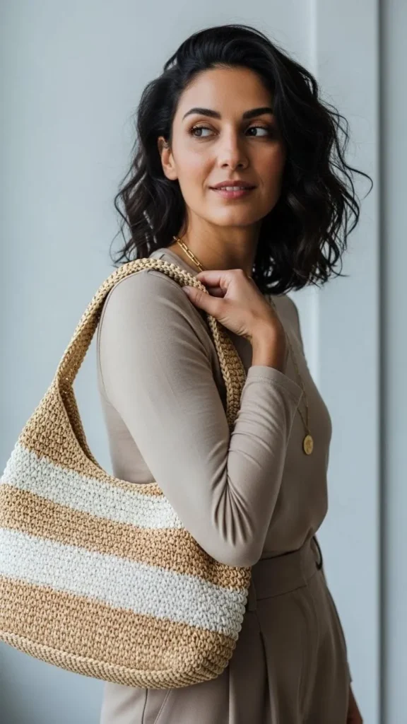 22. All-Neutral Look with Textured Bag
