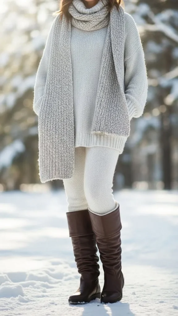 Fold over boots feel relaxed and warm. Pair them with leggings and long knits. This outfit works for cold days at home or errands.
