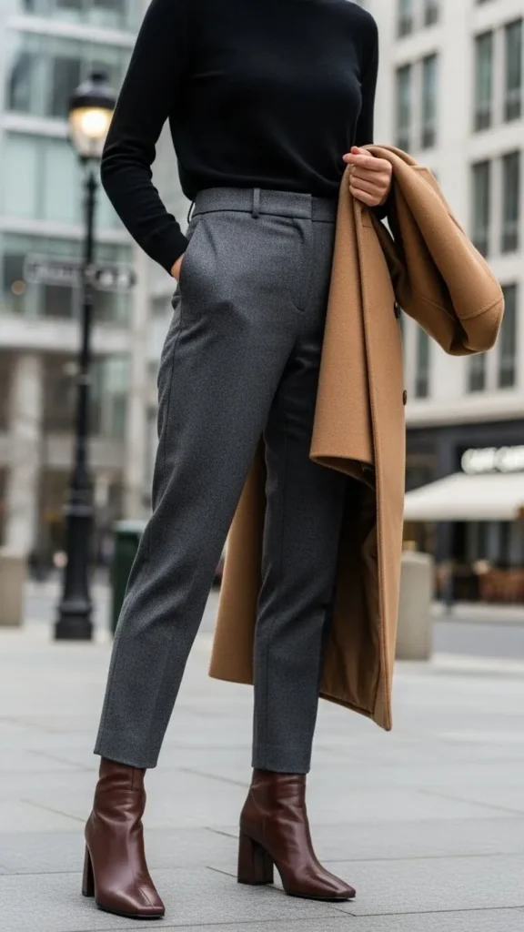Square toe boots feel modern. Pair them with tailored pants for a clean look. Keep layers simple. This outfit fits workdays.