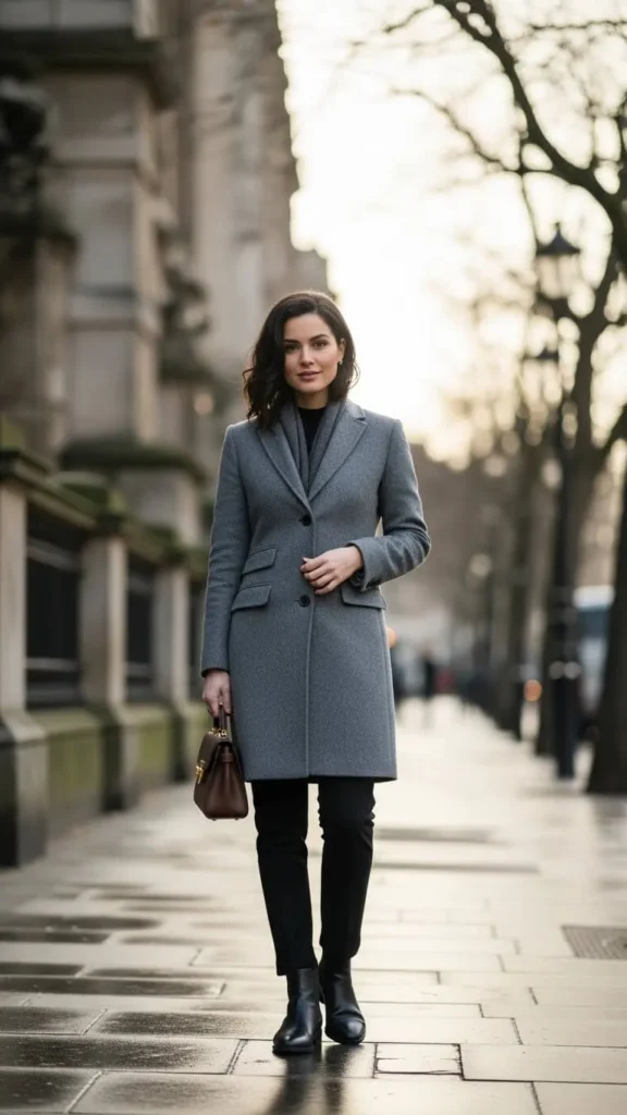 Chelsea boots and a wool coat feel clean and simple. Choose boots with elastic sides for easy wear. Slim trousers or dark jeans work best. A long coat adds warmth and shape. This outfit fits office days and casual dinners. If you want comfort, add gel insoles. Second hand stores often carry wool coats at good prices. Stick to classic colors so pieces work for years. A scarf adds warmth without bulk.