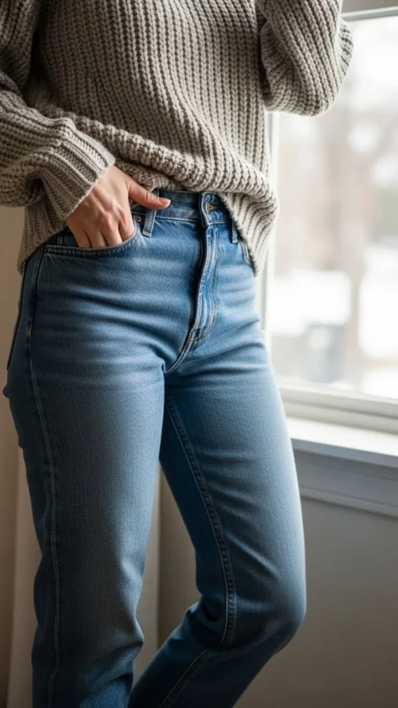 1. Cozy Knit Sweater With Straight Jeans