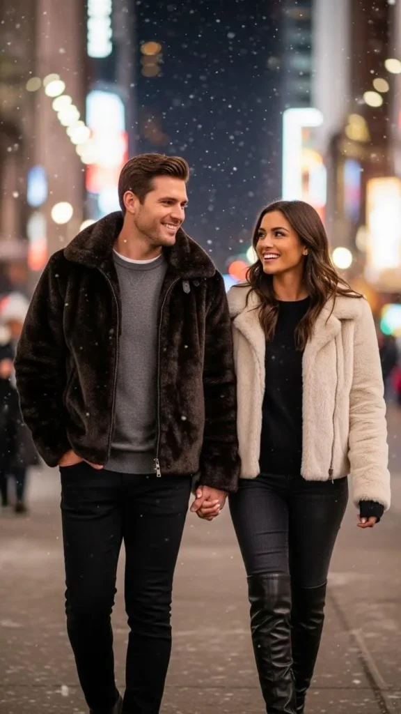 A faux fur jacket feels cozy and romantic, so the outfit underneath can stay basic. Faux fur options are budget friendly and warm. Adding a simple bag and boots completes the look without extra effort.